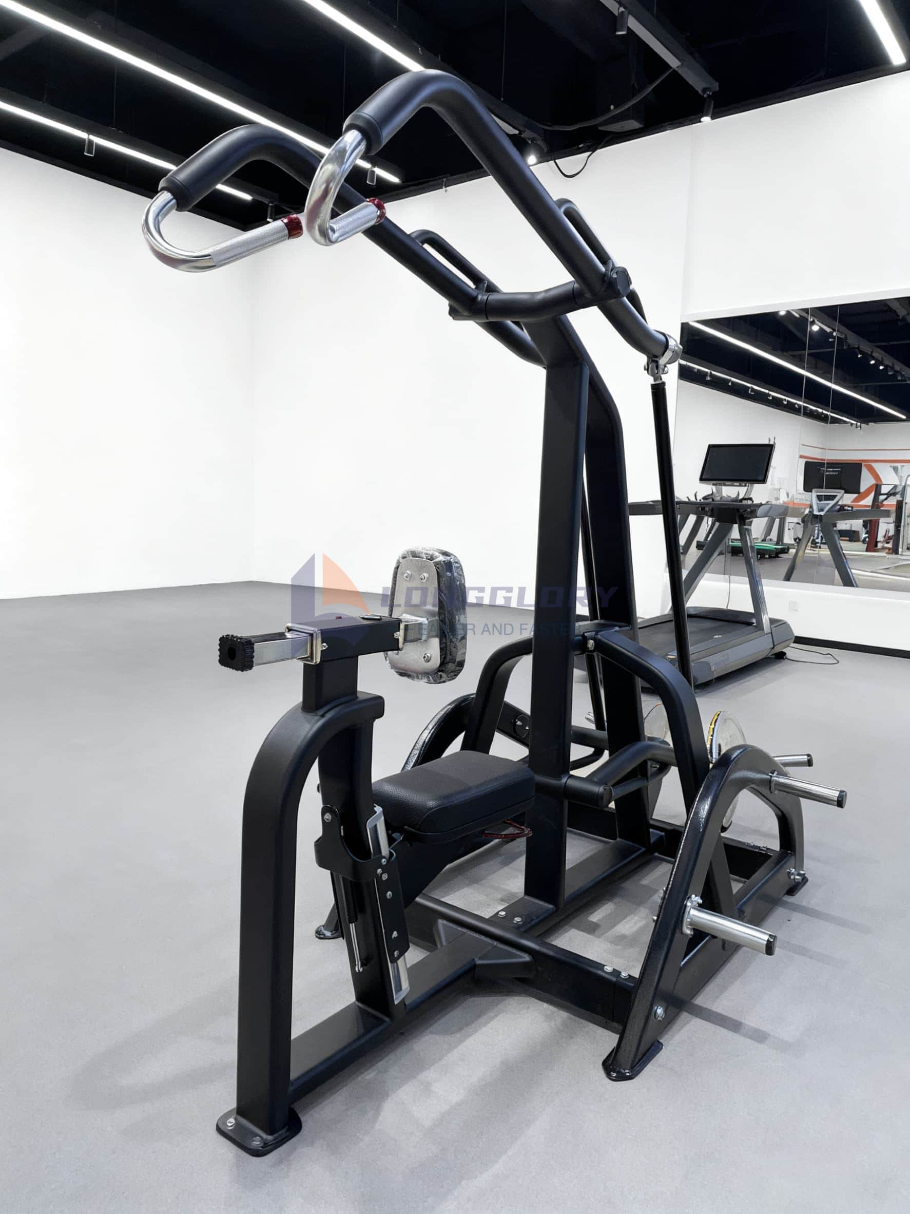 High Row Lat Pulldown Machine lar brukere utføre høye rader, lat pulldowns og andre overkroppsøvelser som effektivt engasjerer latissimus dorsi, trapezius, biceps og deltoider. Det justerbare setet og fotstøtten gjør High Row Lat Pulldown Machine egnet for brukere av forskjellige høyder og kondisjonsnivåer. Perfekt for kommersielle treningssentre, personlige treningssentre eller hjemmeoppsett, High Row Lat Pulldown Machine gir en trygg, effektiv og komfortabel treningsopplevelse.
