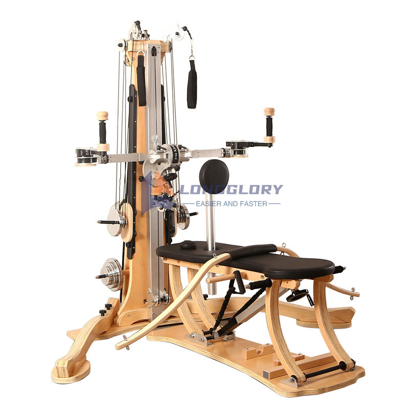 (2) Pilates oppnår ekte ekstensjon med muskelkontroll. Hvis du overstrekker, kan ikke utstyret trekke deg tilbake, og hjernen din vil fortelle deg at hvis du går lenger vil du falle, så du kontrollerer deg raskt tilbake. Innenfor et trygt område vil du kontinuerlig stimulere de presise musklene, som Warrior II på kjernemadrassen. De fleste kjenner ikke adduktormusklene i yoga, men på kjernemadrassen kan du ikke si at du ikke har den muskelen; det vil holde deg fra å trekke deg tilbake! Og hvis adduktormusklene er velutviklede, vil bekkenbunnsmusklene være uunnværlige. Hvis bekkenbunnsmuskulaturen er velutviklet, vil din generelle balanse være overlegen fordi den bestemmer bekkensammentrekningsevnen din, og bekkenet bestemmer bena dine, og bena bestemmer balansen din.